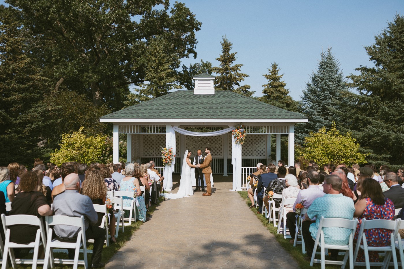 In addition to reception & catering services, Crystal Lake Event Center can host your wedding Ceremony. At Crystal Lake Event Center, let nature be the backdrop for your big day with an outdoor wedding ceremony in our beautiful NEW Wedding Gazebo nestled among trees and shrubs on the course, providing you with your own “secret garden” for your I Do’s. Or have a cozy indoor ceremony in our spacious banquet room.